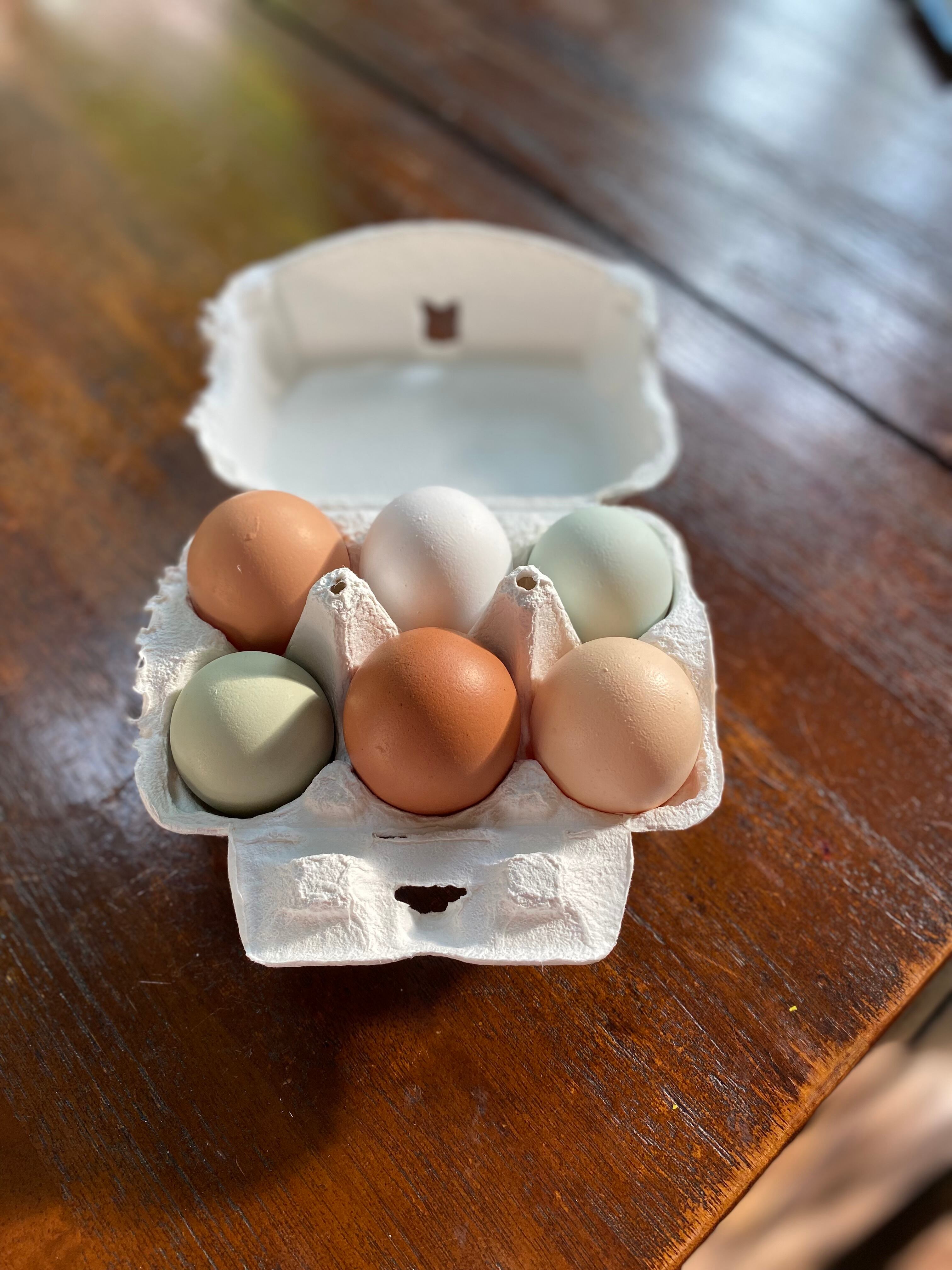チキチータのカラフル自然卵の中から、特に色味の美しいものを選りすぐり、パックに藁結びでおめかししました。割れ保証一個付きです。
